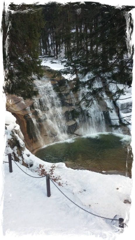 Jsou nejbohatším vodopádem na vodu řítící se s hukotem po celé šířce koryta do hloubky přibližně 10 metrů. Vodopády zabírají celé řečiště a tvoří v žulové skále obří kotle, tzv. Čertova oka. Jedná se o prohlubně, které byly v žulovém podkladu vyhloubeny pohybem vody s kamínky.